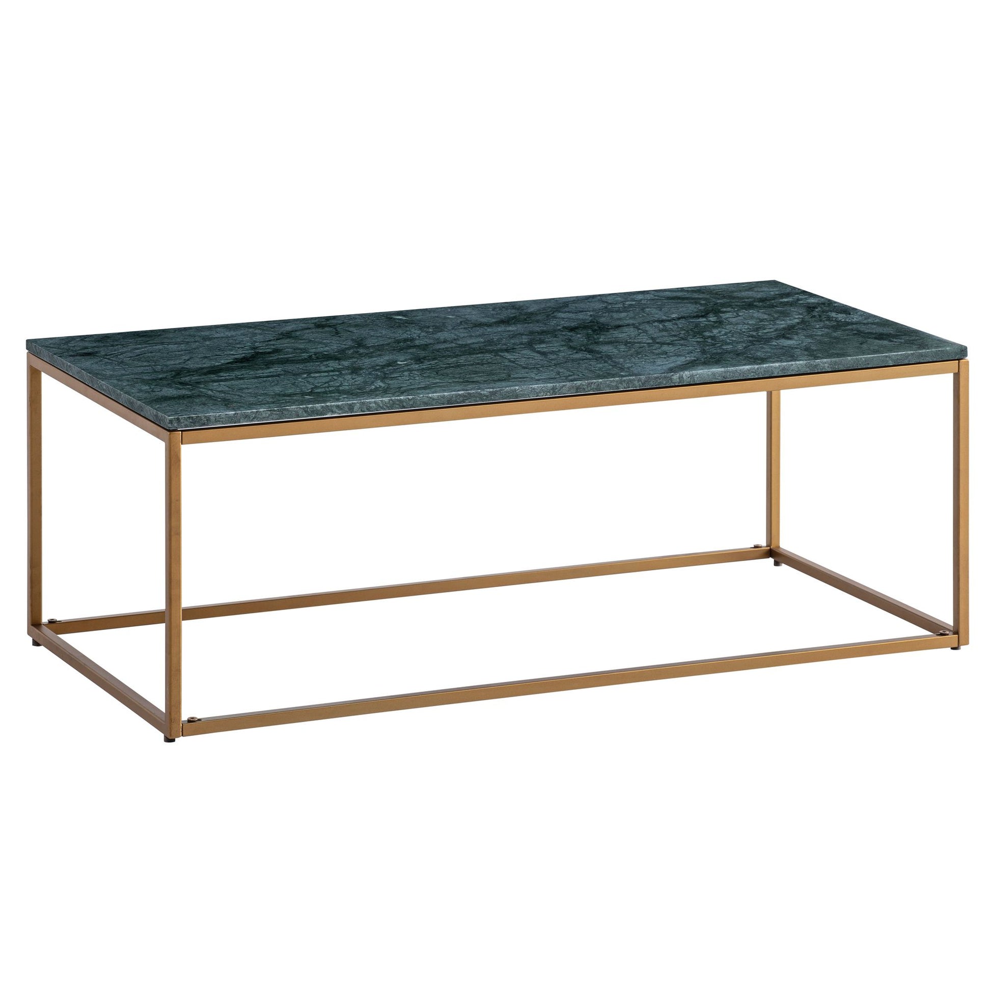 Salontafel Echt Marmer Groen 100x50x35 cm Salontafel Metaal Goud, Design Woonkamertafel Rechthoekig, Marmeren Tafel Loungetafel Groot, Salontafel Modern