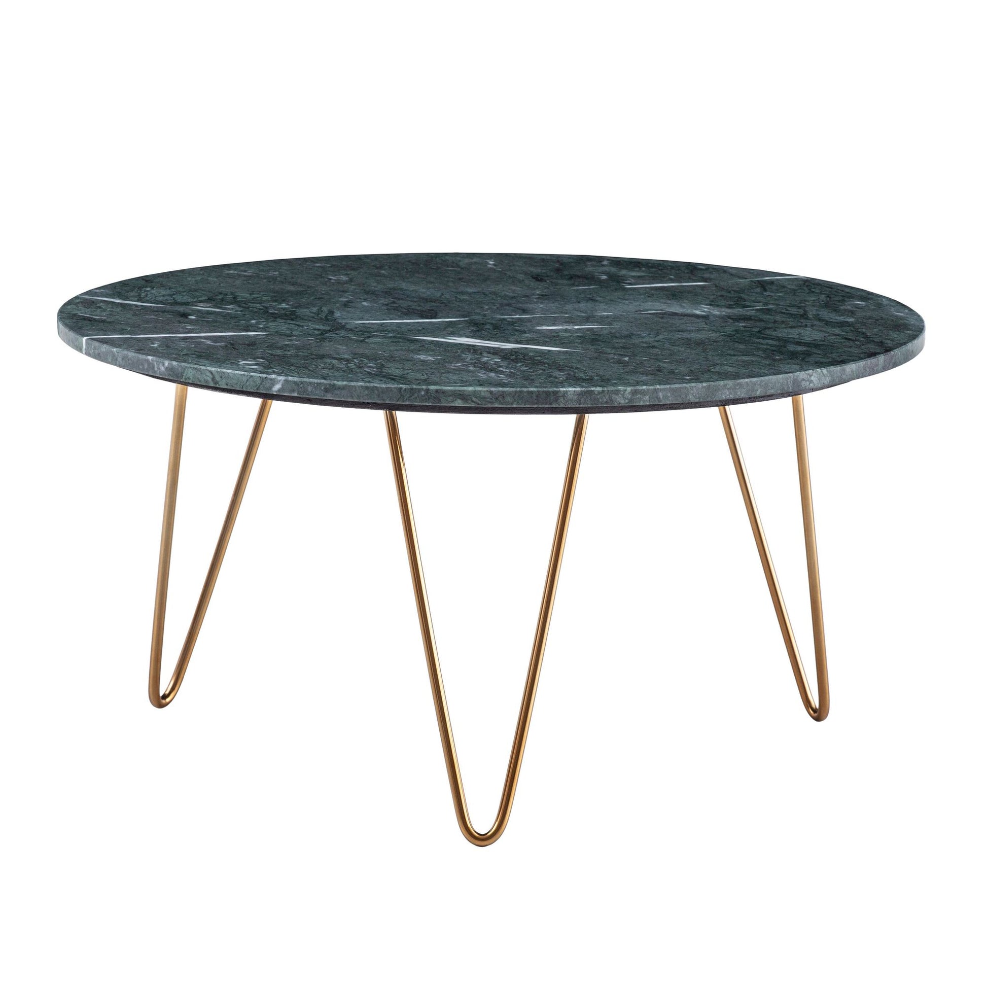Salontafel Echt Marmer Groen 70x70x35 cm Salontafel Metaal Goud, Design Statief Woonkamertafel Rond Modern, Loungetafel Groot, Salontafel Haarspeldpoten