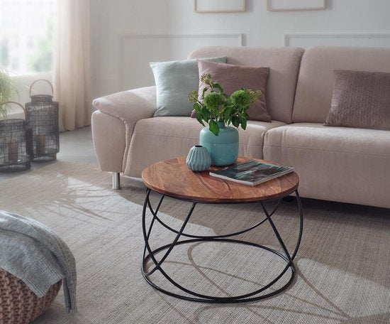 salontafel sheesham massief hout / metaal 60 x 40 x 60 cm | Salontafel rond massief bruin | Salontafel Moderne houten tafel | Tafel woonkamer industrieel
