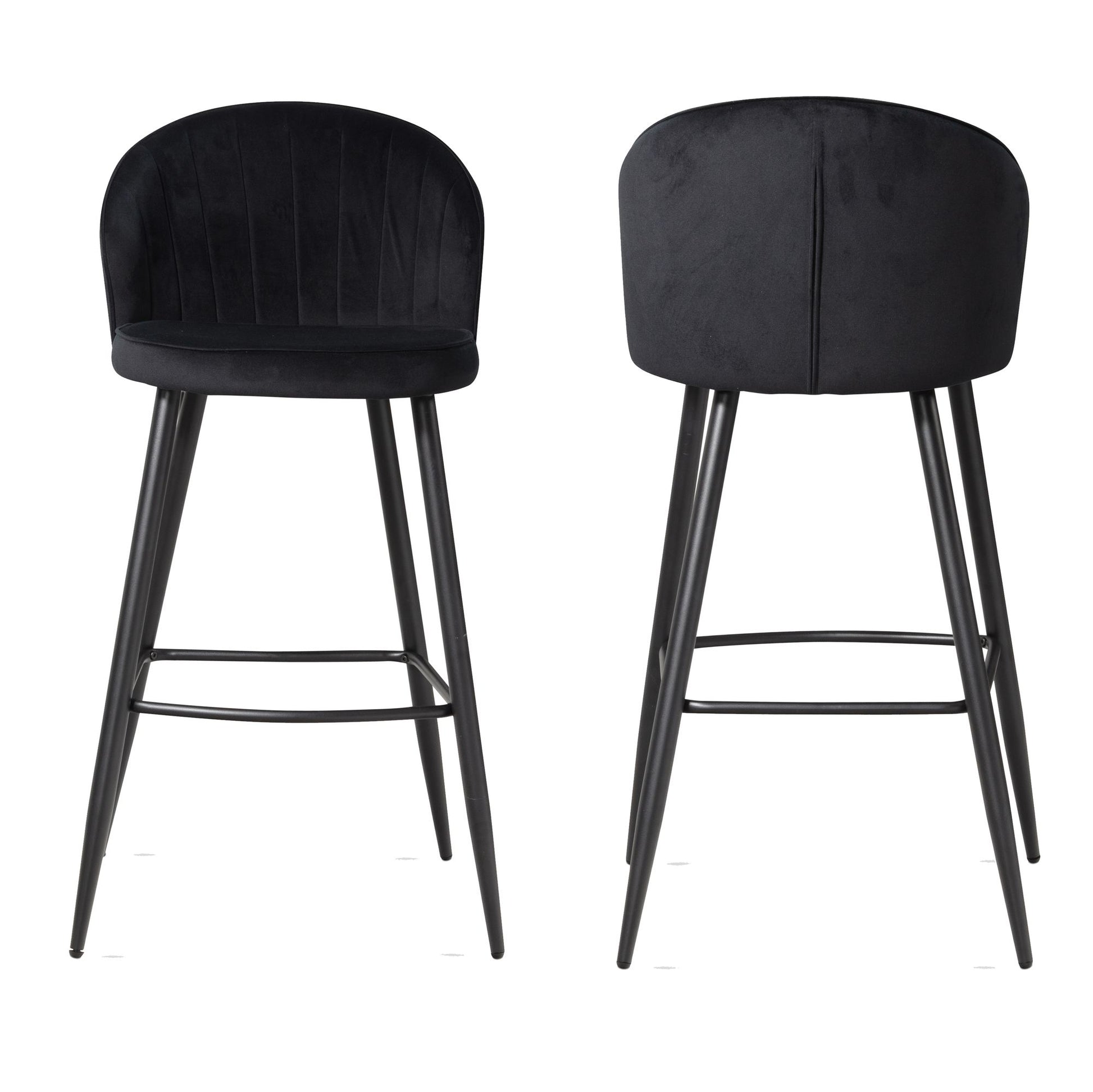 set van 2 barkrukken, zwart fluwelen kruk met rugleuning 56 x 102,5 x 52,5 cm, keukenkruk Scandinavische stof / metaal 110 kg, design barkruk, tegenkruk, bistrokruk gestoffeerd