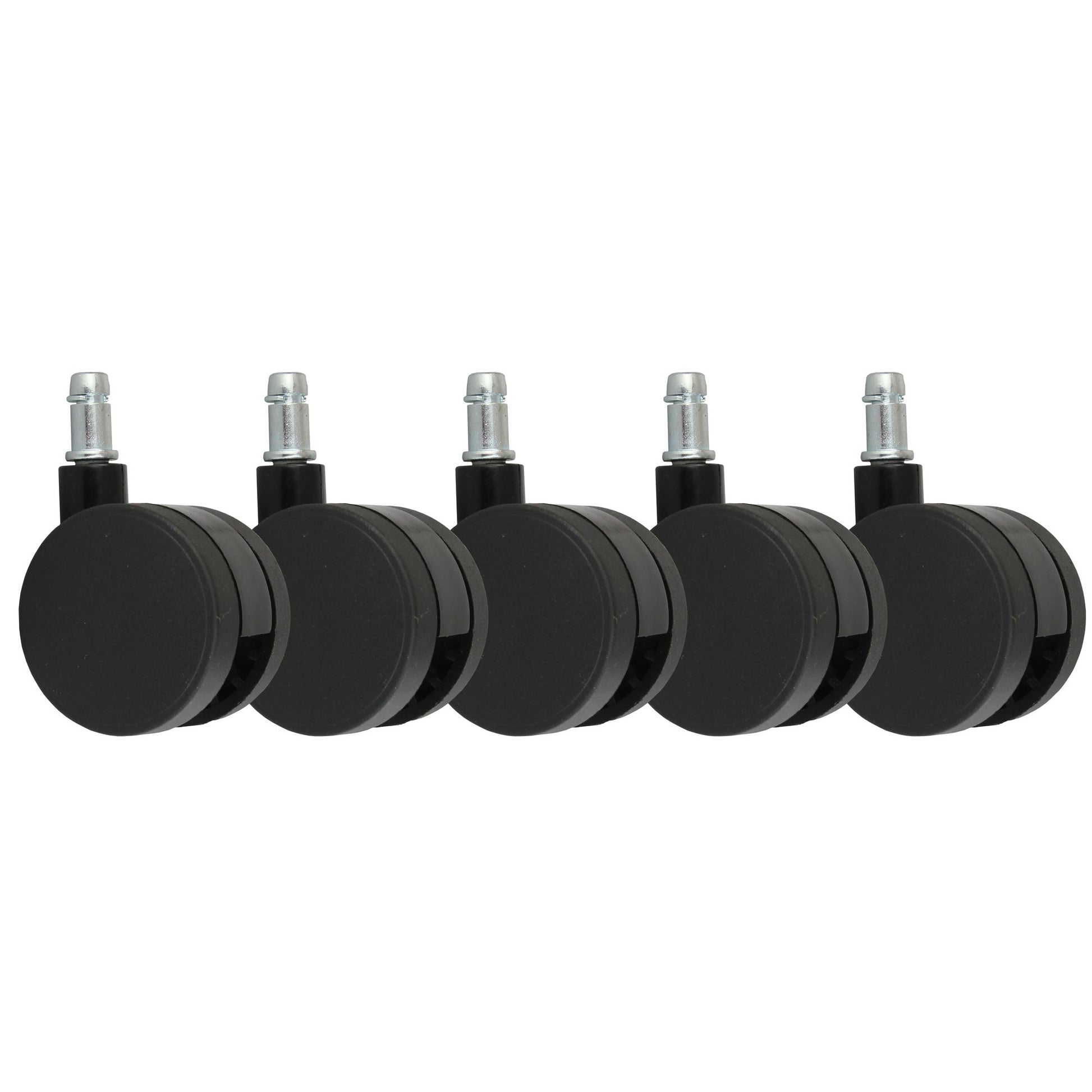 set van 5 wielen voor bureaustoel zwarte pen 11 mm/diameter 60 mm zachte vloer wielen zwenkstoelwielen stoelwielen