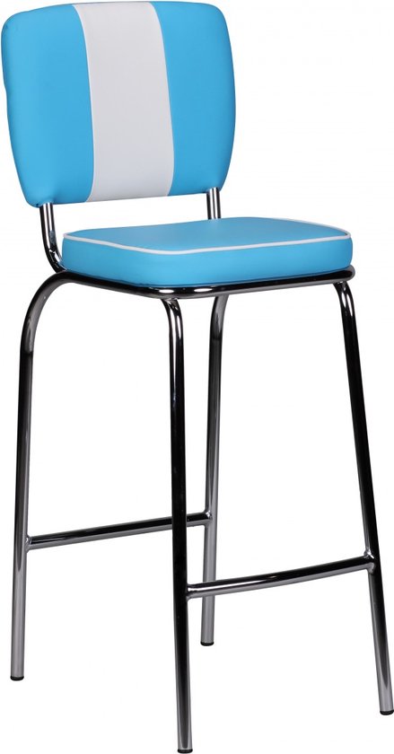 De rugleuning van elke variant is van kunstleer en voorzien van een brede witte baan. De zitting is afgewerkt met een subtiel wit randje en de chromen stoelpoten glimmen je tegemoet. Een aantal van deze retro barstoelen passen perfect bij een bartafel uit de Elvis serie!