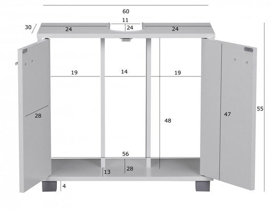 - Interne afmetingen (BxHxD): 56 x 48 x 28 cm