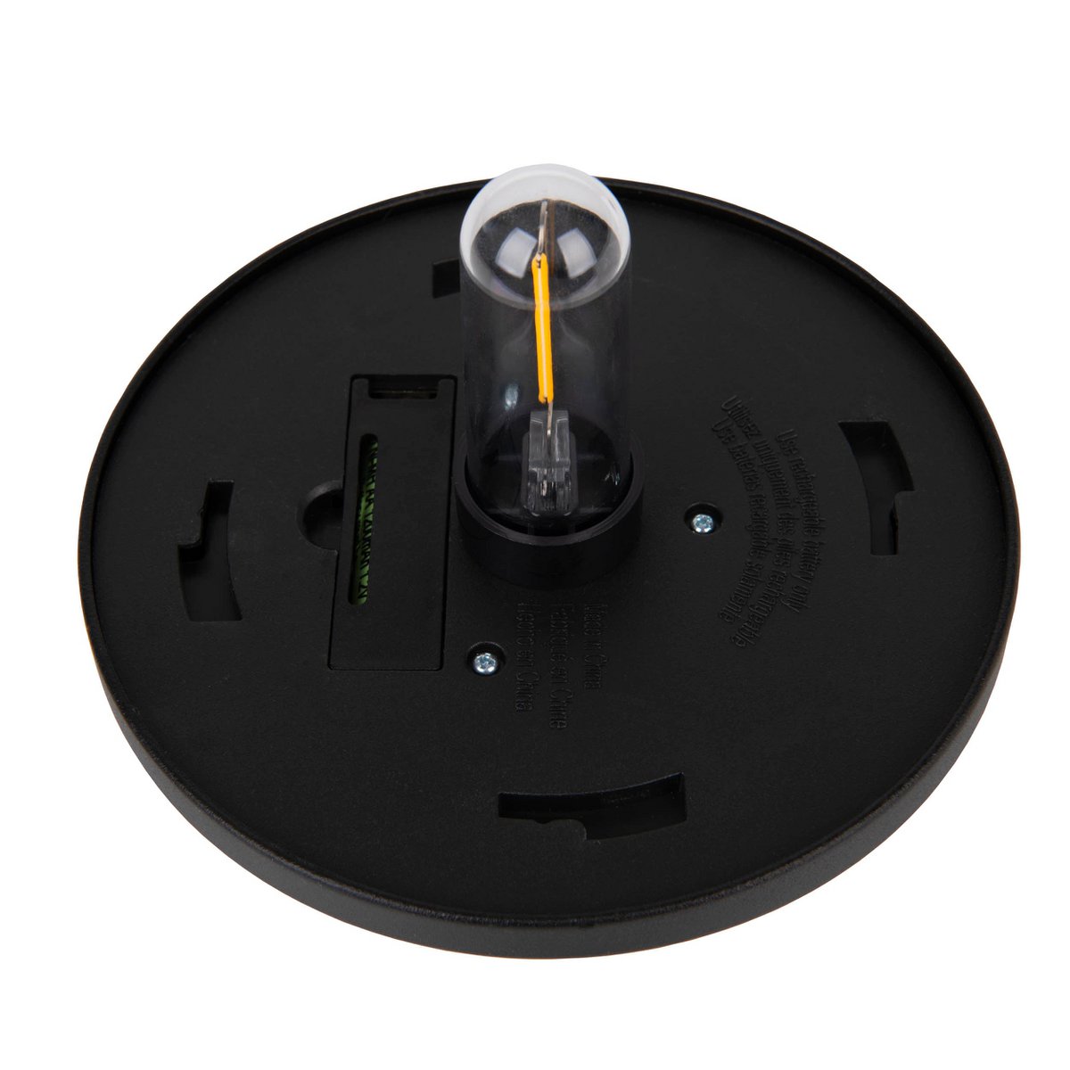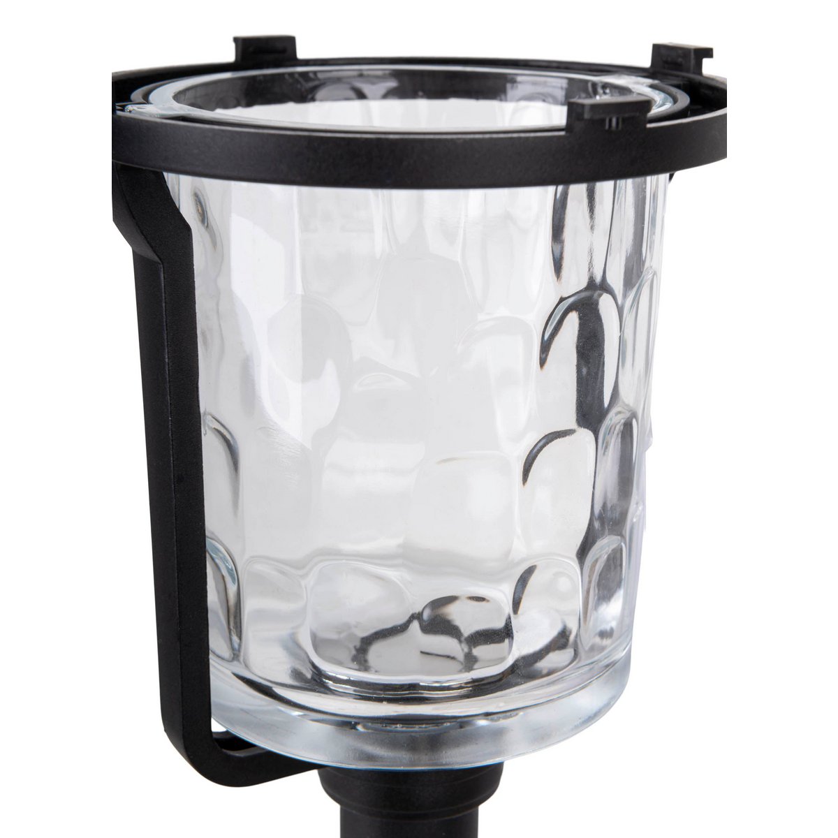 Solar-deco-earth spit "Simon" 54,7 cm hoog, gemaakt van zwart metaal en gestructureerd glas, geïntegreerde LED, warm wit.