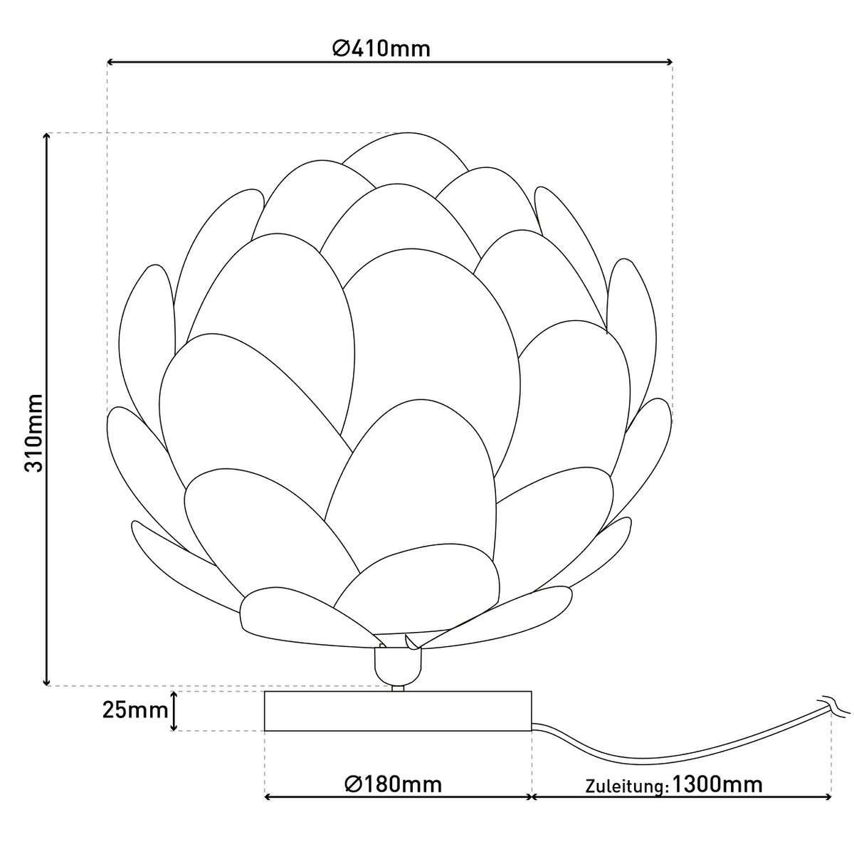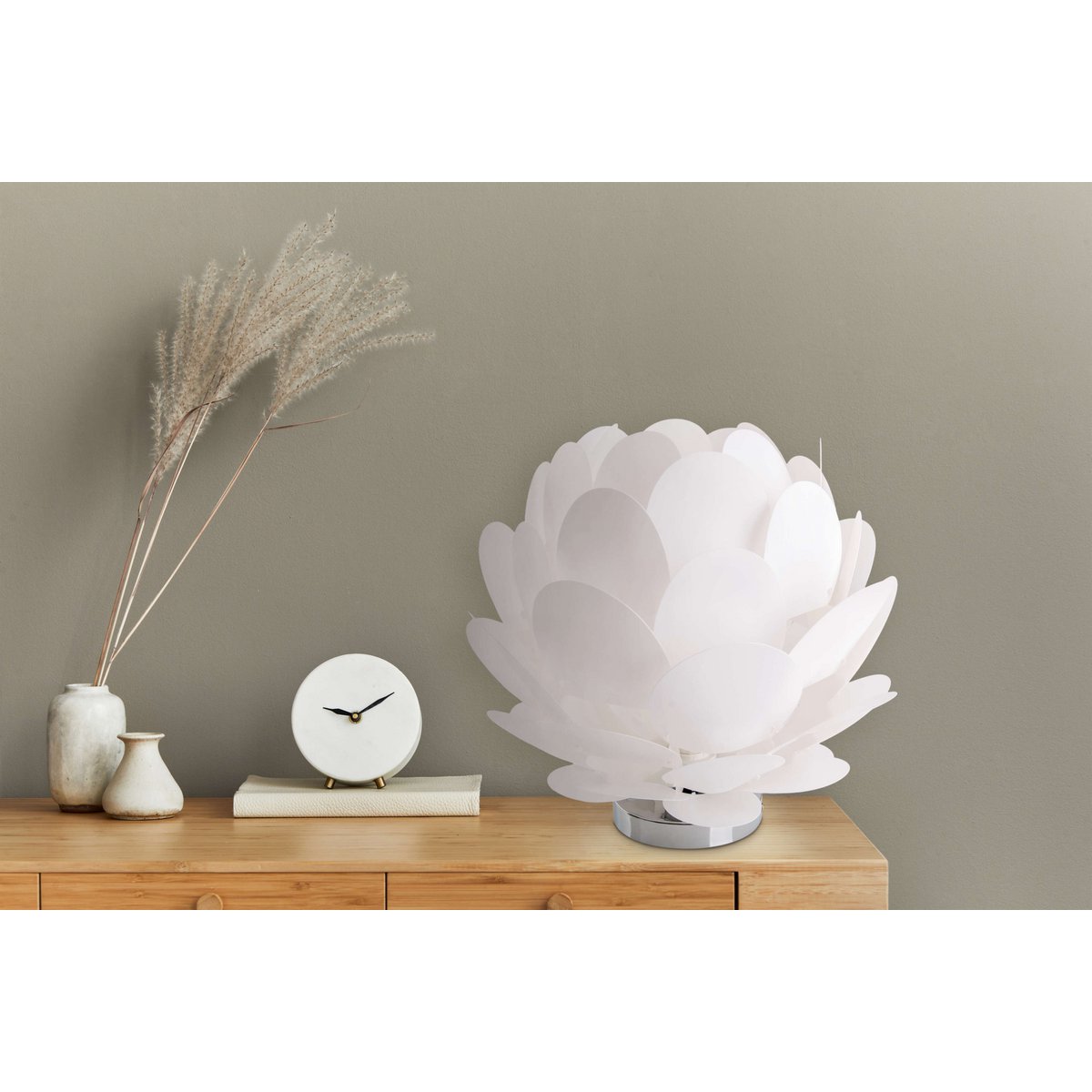 Tafellamp "fora" gemaakt van metaal en wit plastic, E27 -aansluiting, verlichting voor woonkamer, eetkamer en nachtkastje, Ø41 cm
