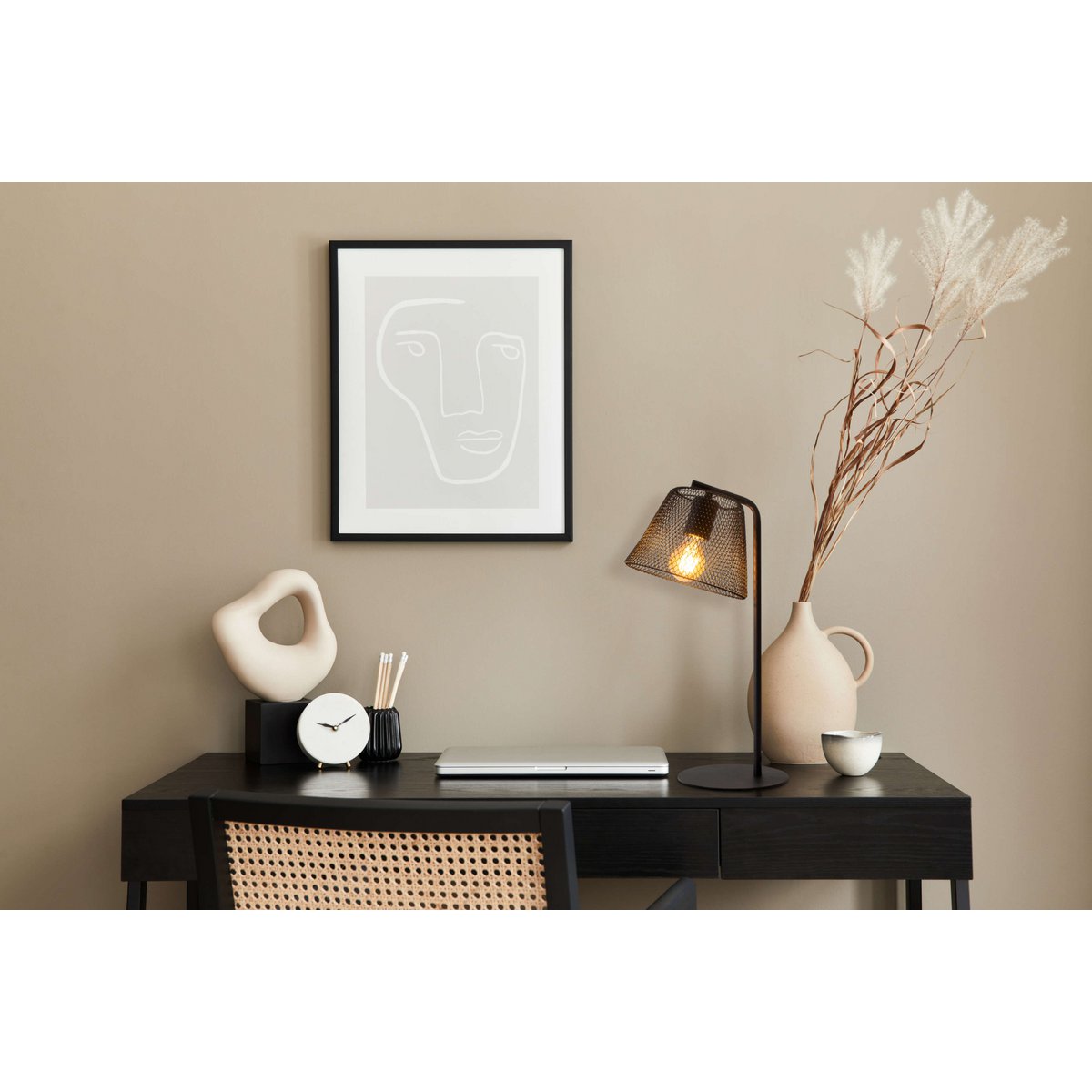 Tafellamp "Korie", metalen tafellamp in het zwart, met E27 -aansluiting, 50 cm hoog, voor woonkamer en kantoor.
