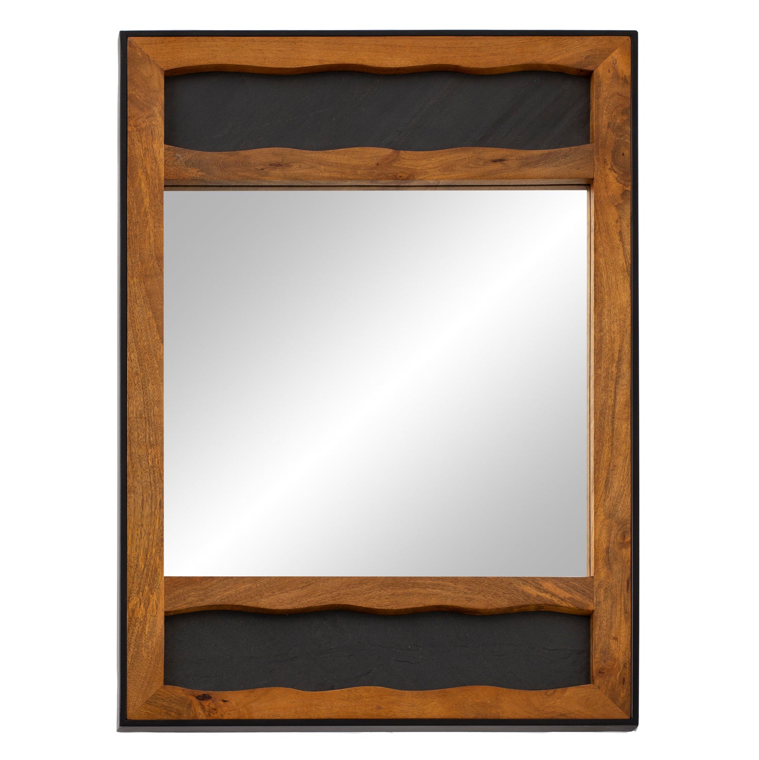 wandspiegel mango massief hout & steenlook 72x102x3 cm halspiegel groot | Design hangende spiegelwand | Moderne kledingkastspiegel met metalen frame horizontaal en verticaal