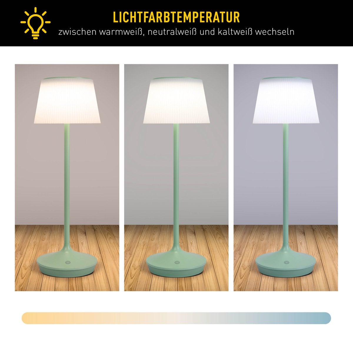 Zonne -batterijlamp "EMMI" 38 cm hoog, paraplu Ø 13 cm, metaal in mint en wit plastic, voor de buitenruimte, dimable CCT.