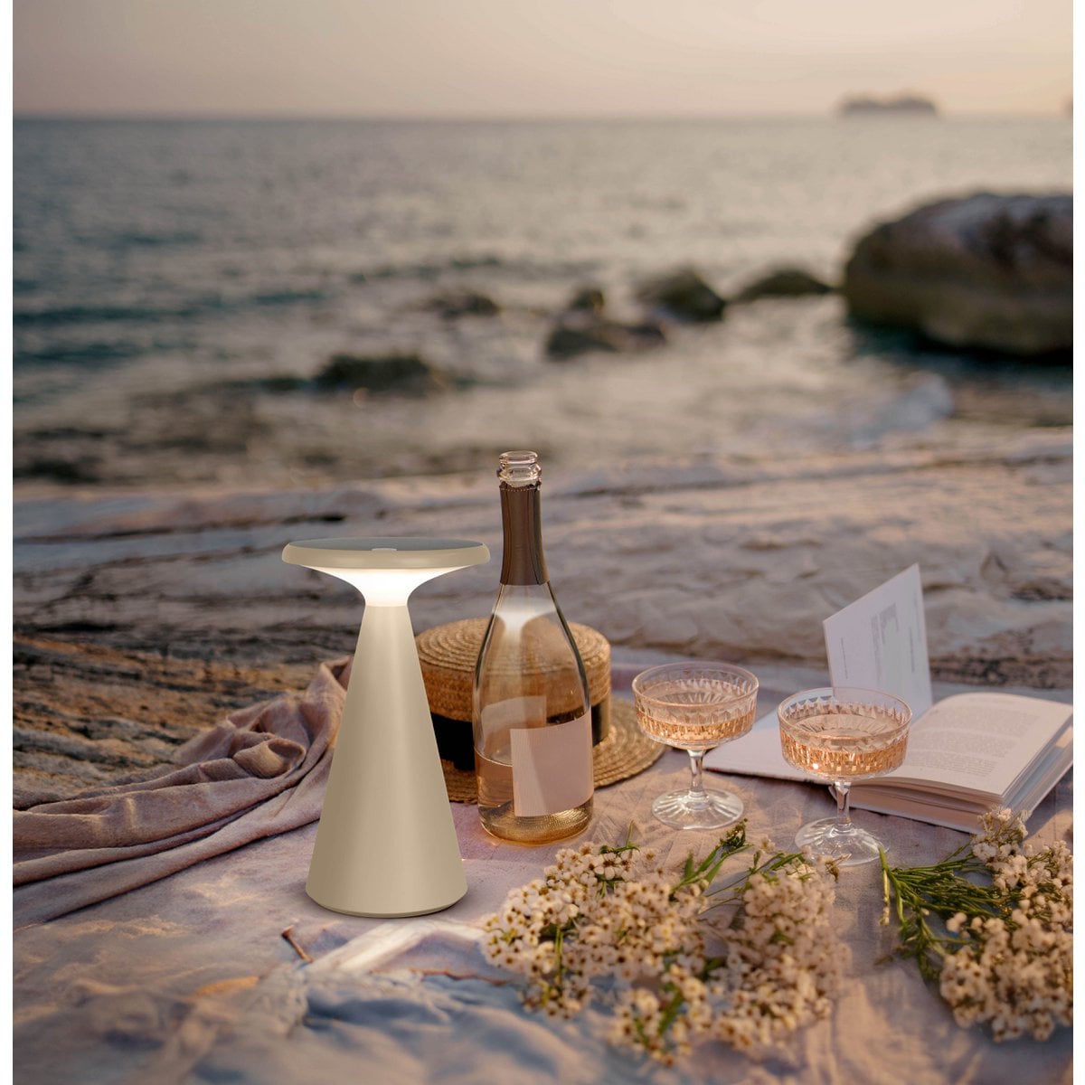 Zonne -batterijtafellamp "Palu" voor buiten en binnen, gemaakt van plastic in beige, 20 cm hoog